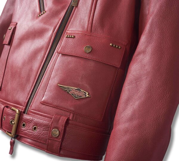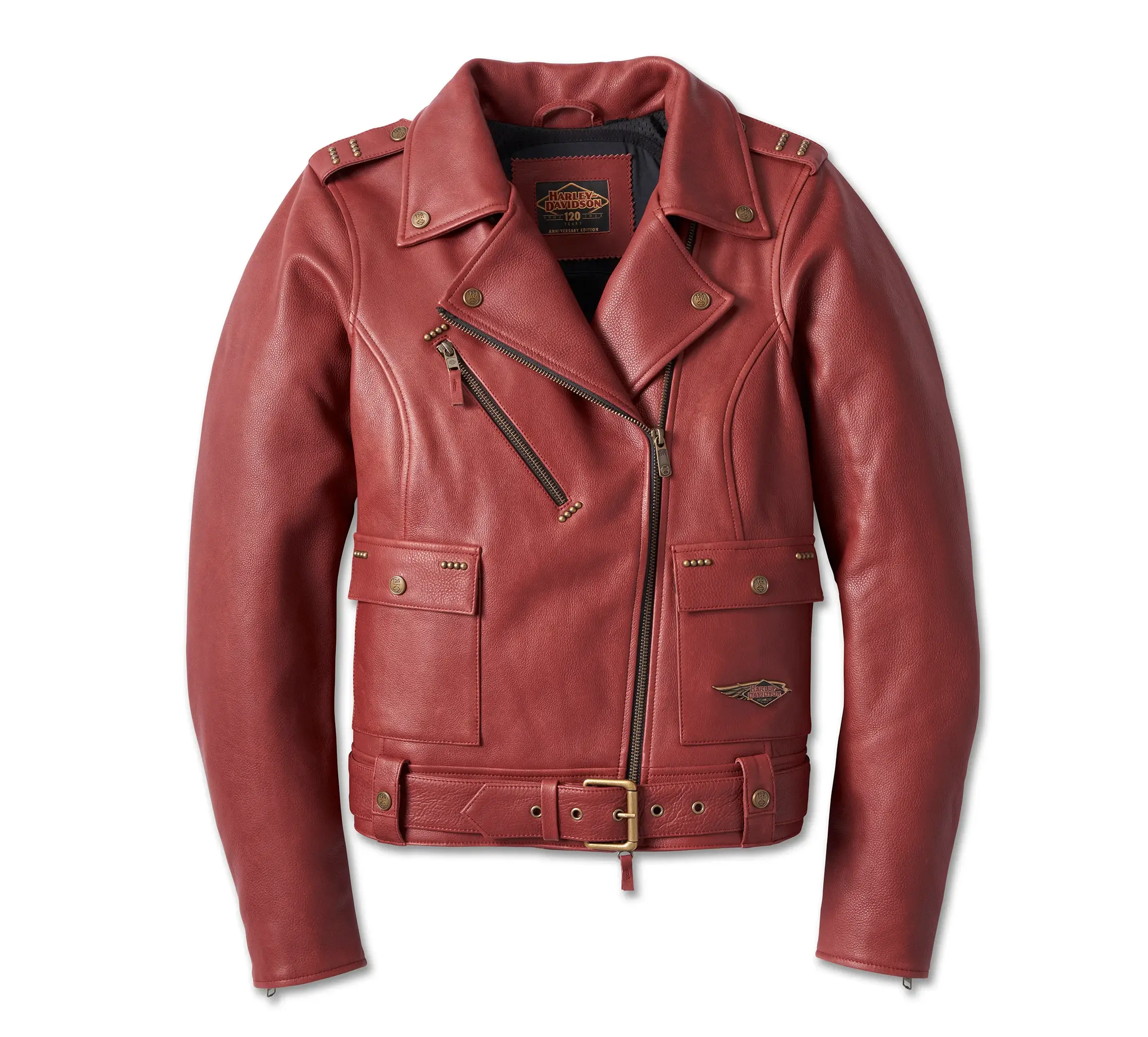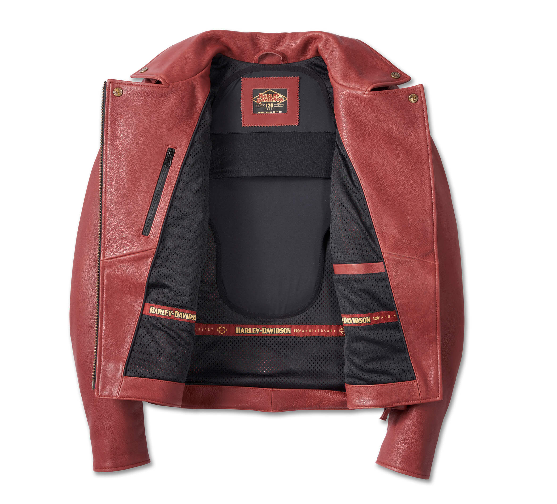 Harley-Davidson 120th Anniversary Cycle Queen Bőr dzseki Szellőztetés a törzsnél Masszív marhabőr, 100% poliészter bélés Két irányú cipzár D30 Ghost protektor a vállnál és a könyöknél, Hátsó: D30 Viper