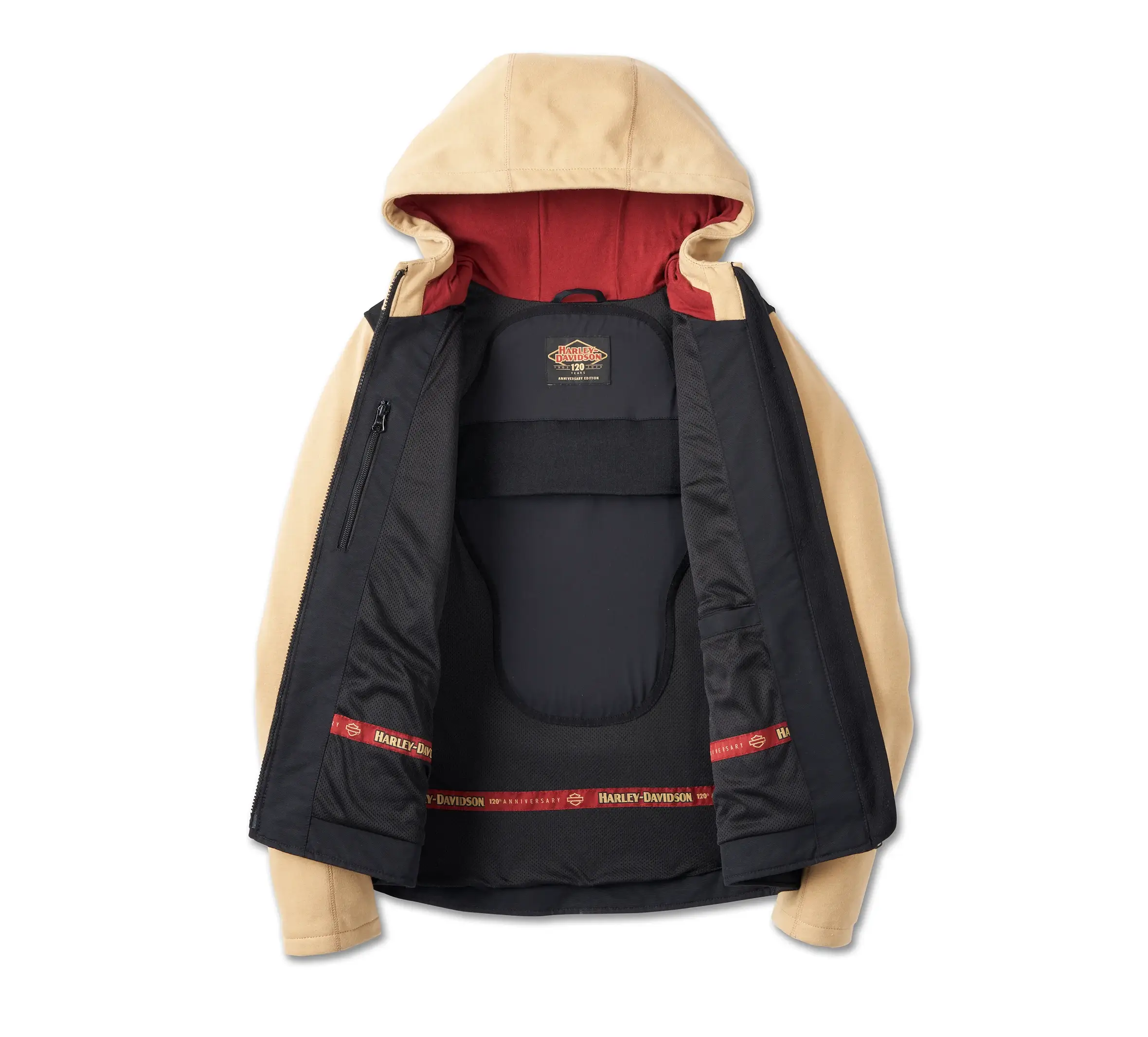 Harley-Davidson Női 120th Anniversary protektoros polár pulóver 66% Pamut, 34% poliészter. Bélés: 100% poliészter. Két irányú cipzár D30 Ghost protektor a vállnál és a könyöknél