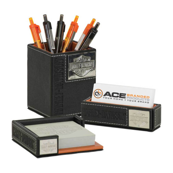 Harley-Davidson Bar & Shield műbőr íróasztal-kiegészítő készlet, fekete