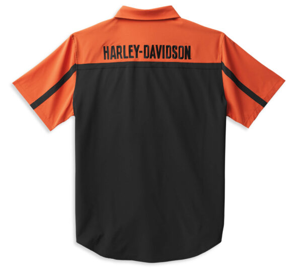 Harley-Davidson Férfi Coolcore B&S rövid ujjú ing 88% Poliészter-12% Spandex, A Coolcore® anyag a hőszabályozás révén elvezeti a nedvességet a testből, így egész évben kényelemérzetet biztosít