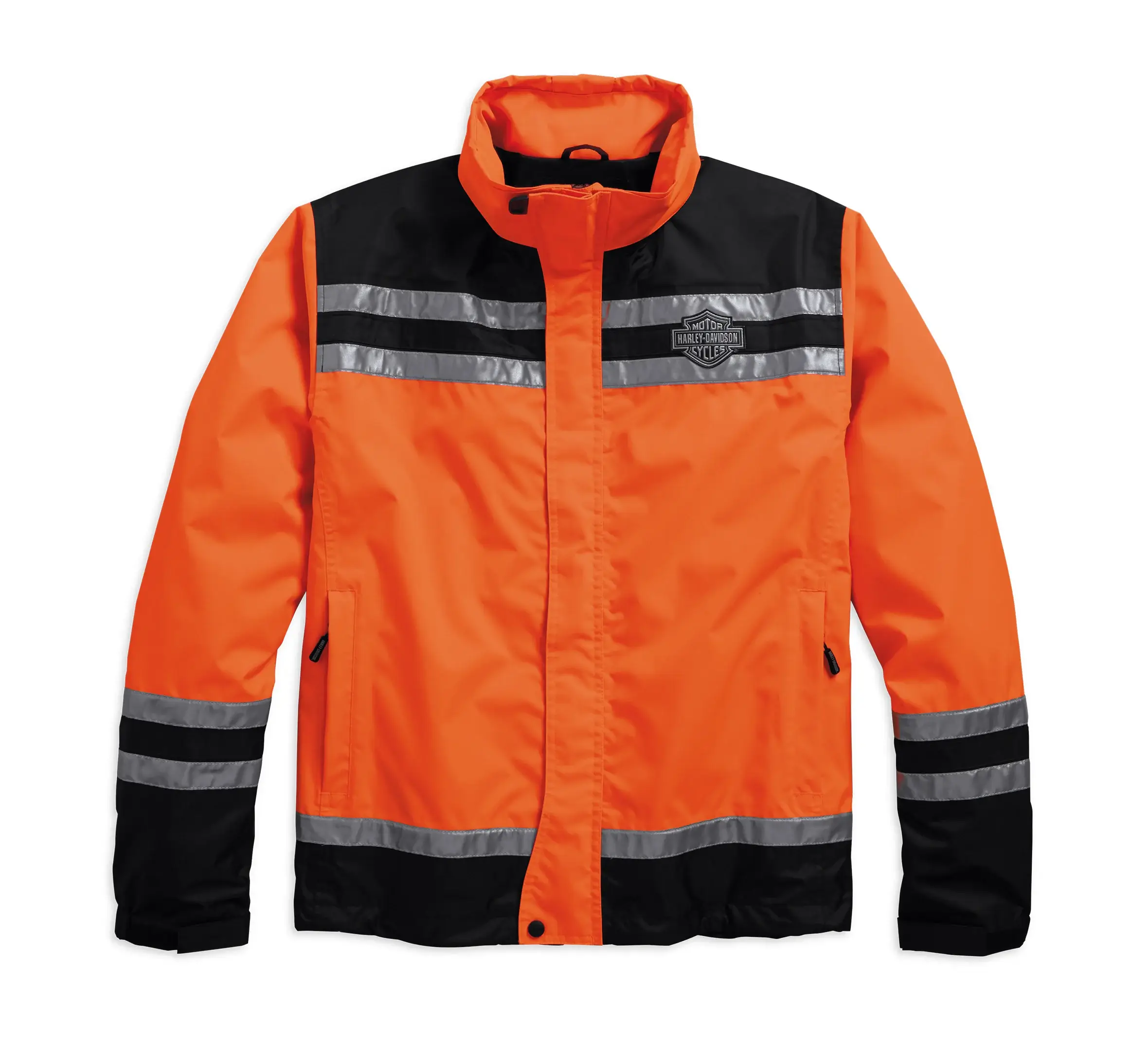 Harley-Davidson Férfi Hi-Visibility Reflective Eső kabát Stay Dry: Vízálló és lélegző. Teljesen variableratmentes belső és dupla variablerattömítésű vállak 3MTM ScotchliteTM fényvisszaverő anyagú csíkok 300 denier 100% poliészter oxford. Poliészter hálós bélés