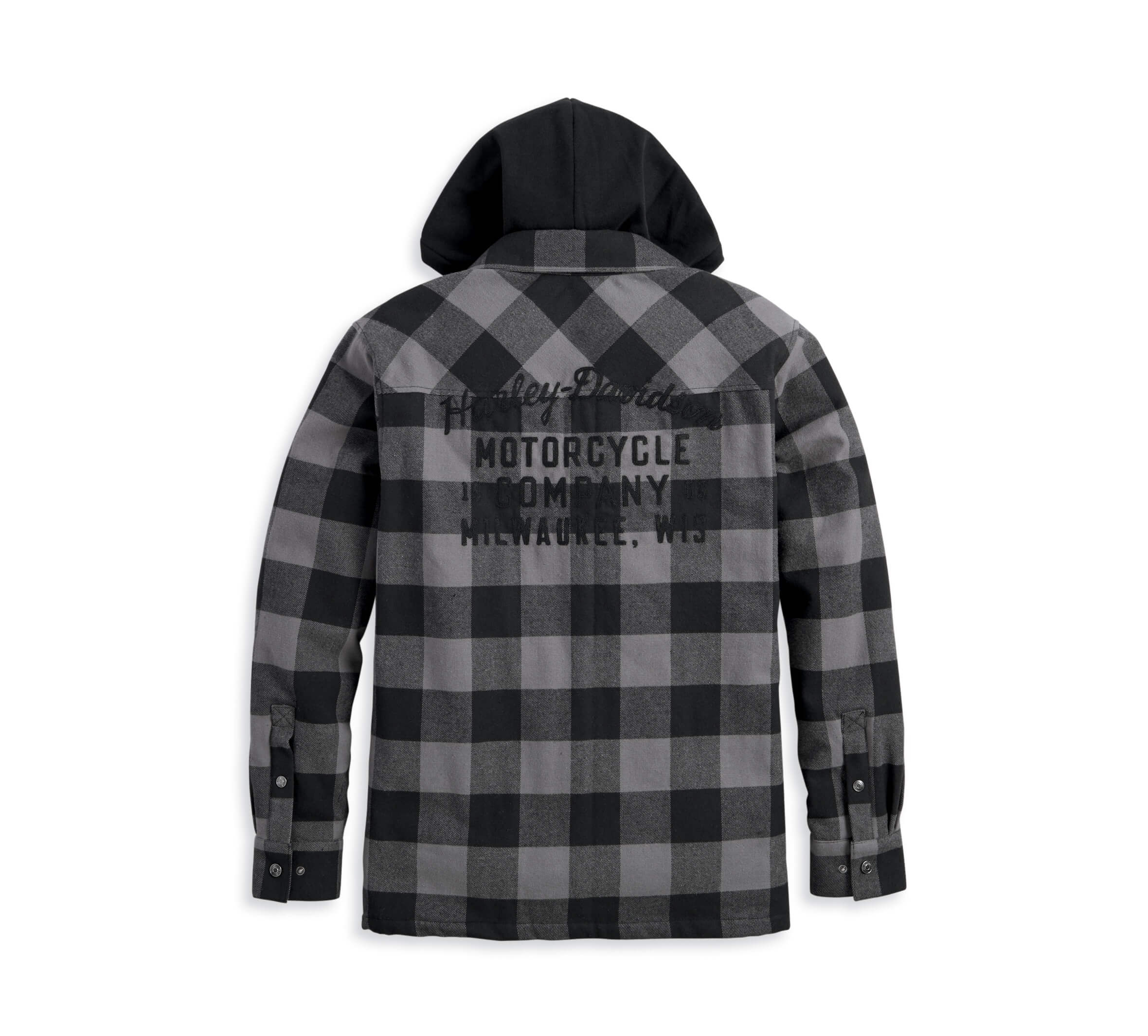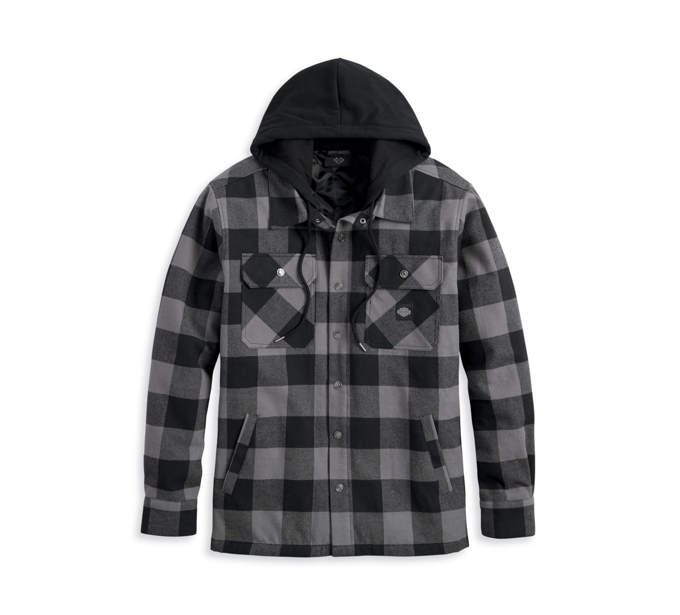 Harley Davidson Férfi kapucnis ing – Black Plaid 100% Pamut Twill – 100% Poliészter bélés, Szőtt címke