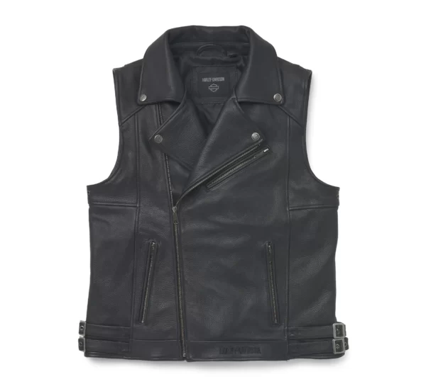 Harley-Davidson Férfi Layton bőrmellény Marhabőrből készült, poliészter bélés Kétirányú fém cipzár