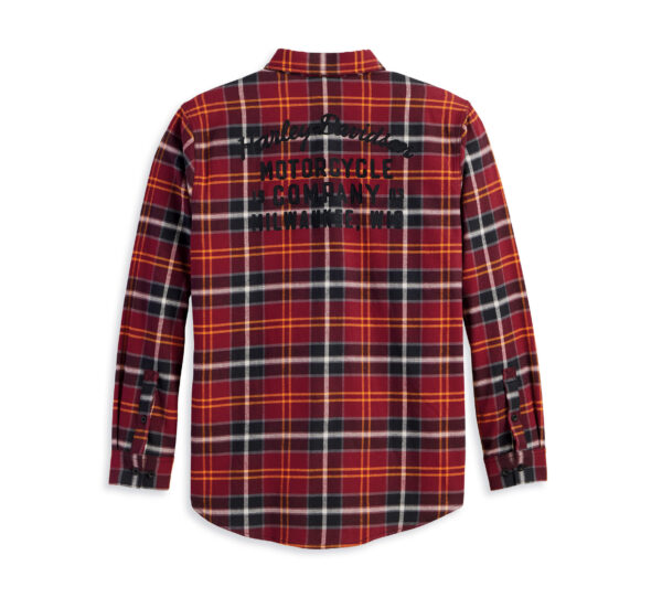 Harley-Davidson Férfi Milwaukee ing – piros kockás 100% Pamut Gombos záródás Közvetlen hímzés