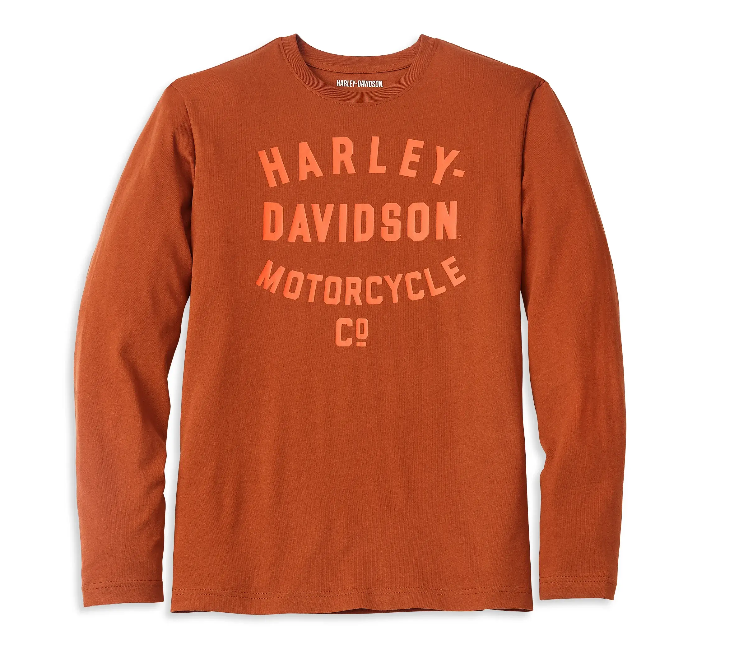 Harley-Davidson Férfi Racer Font Motorcycle Co. hosszú ujjú póló 100% Pamut Kézi nyomtatott grafika