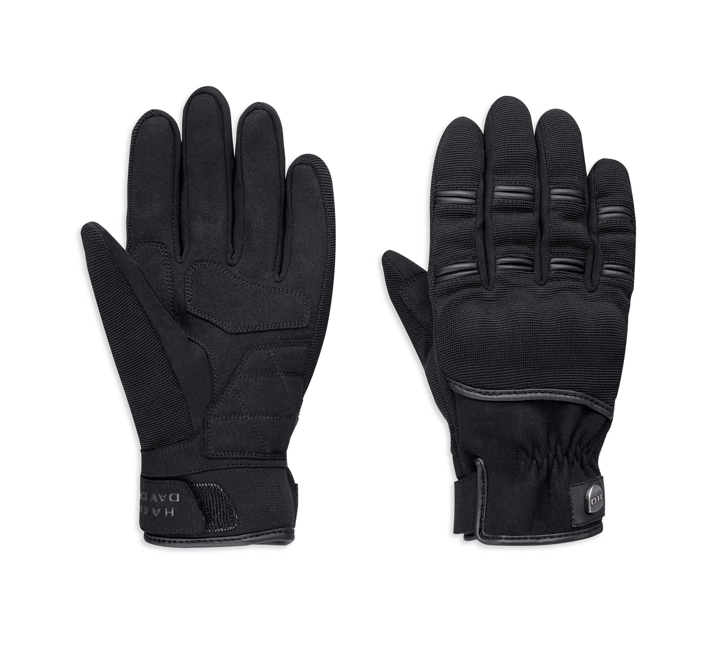 Harley-Davidson Férfi Sarona Full-Finger kesztyű Fit & Mobility: Ergonomikus hüvelykujj és 30o-ban előre ívelt ujjak. Power-sztreccs csuklók. Állítható záródás Kemény csuklóvédő. Megerősített párnázott tenyér. Érintőképernyő kompatibilis Spandexet, neoprént és amarát tartalma