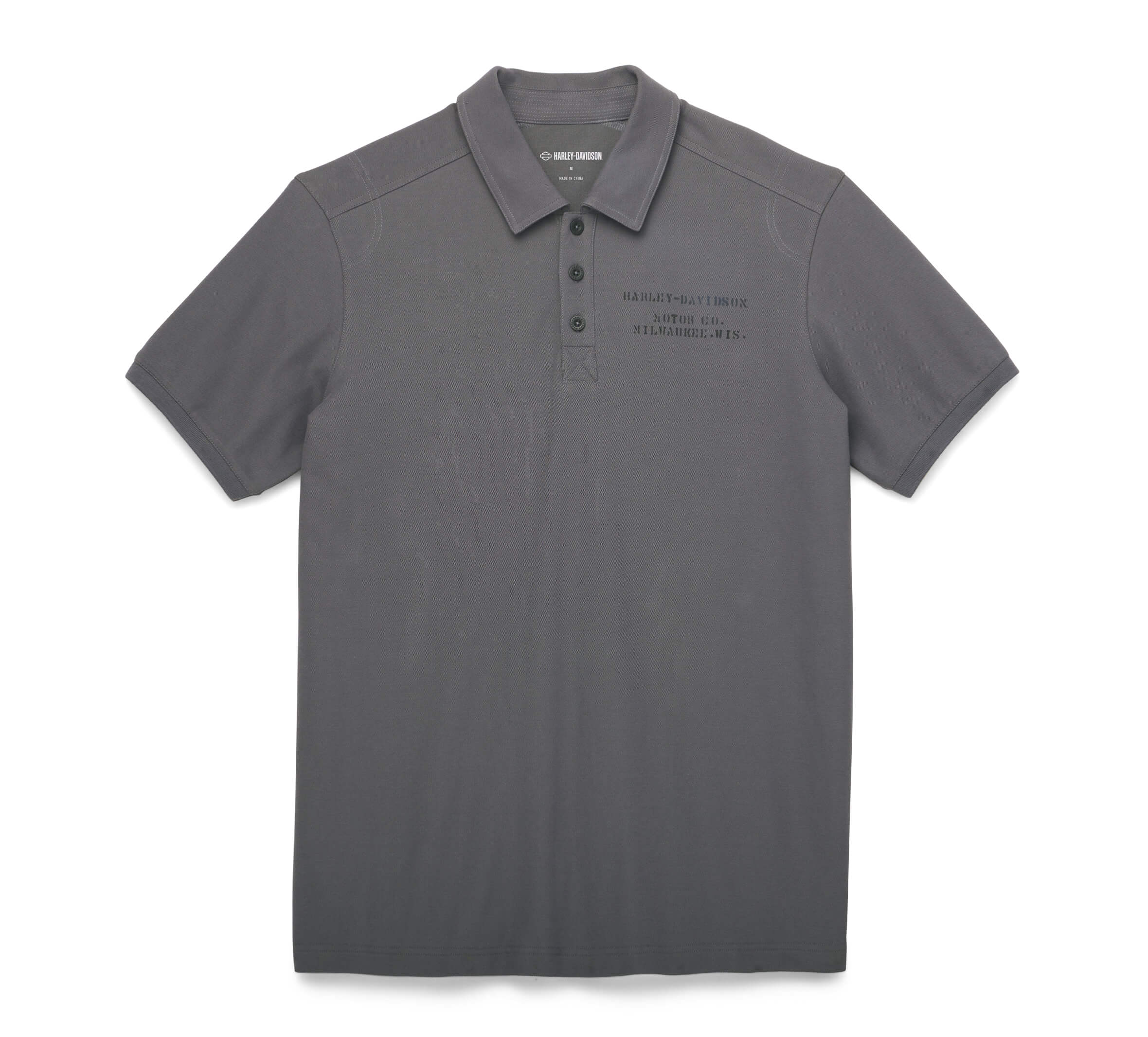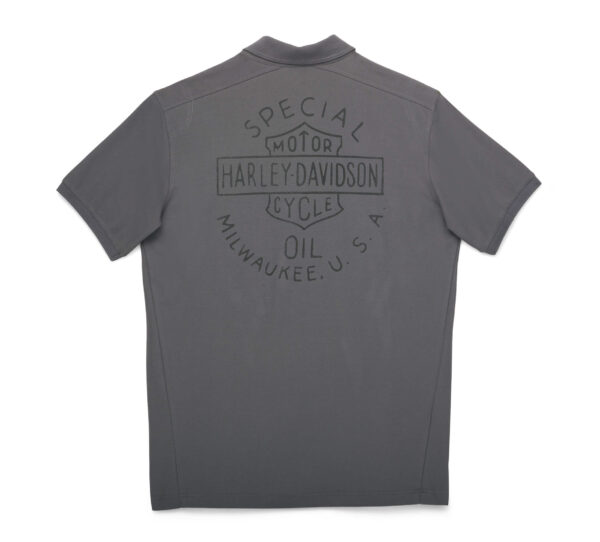 Harley Davidson Férfi Special Oil Piké póló – Blackened Pearl 63% Pamut 37% Pique szövet, Nyomtatott grafika