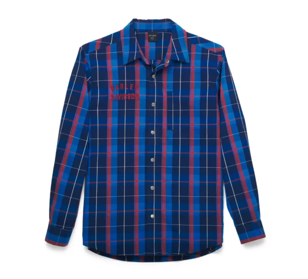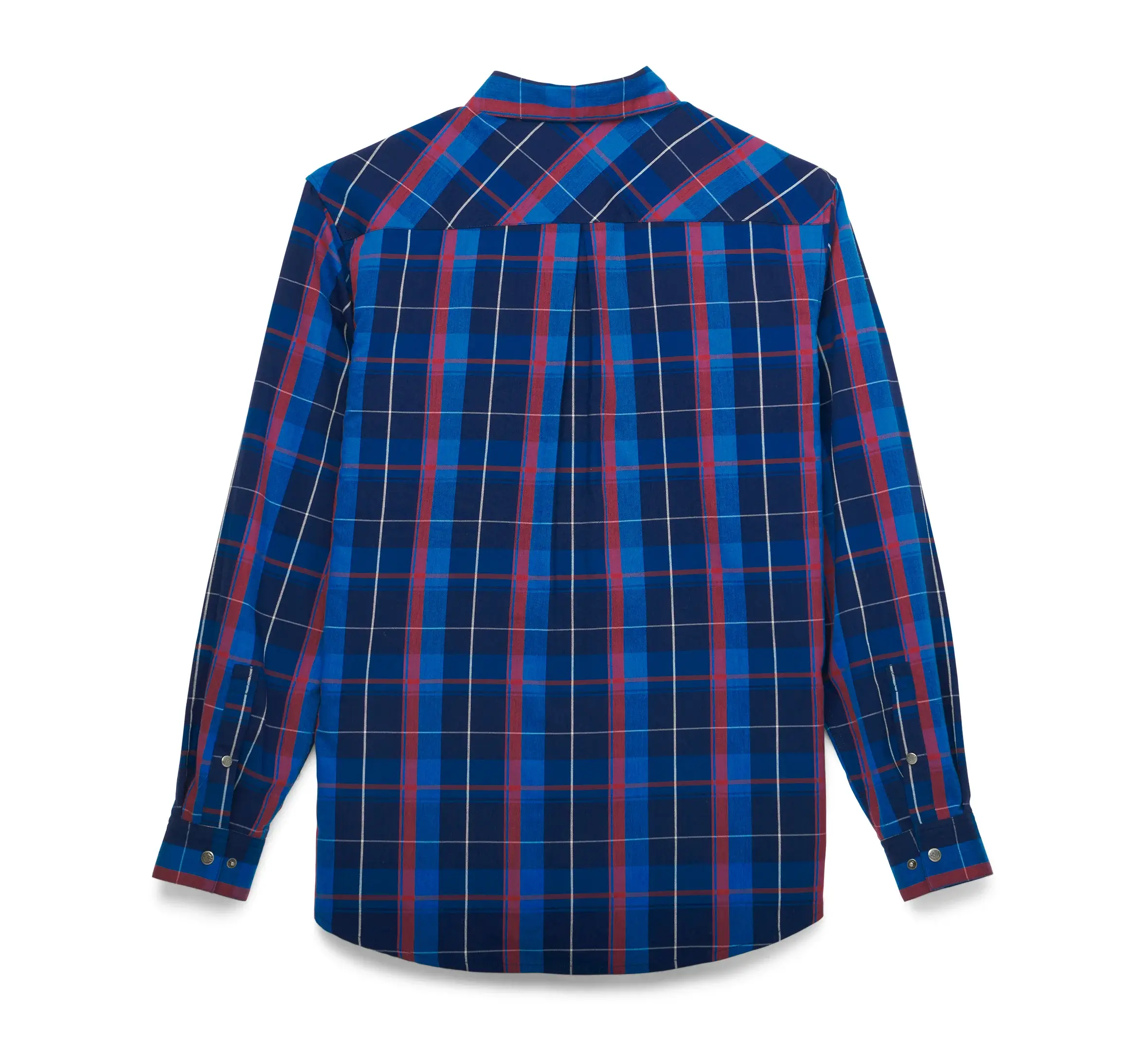 Harley-Davidson Férfi Traveler Plaid ing 66% Pamut 30% Pliészter 4% Spandex Gombos zárodás