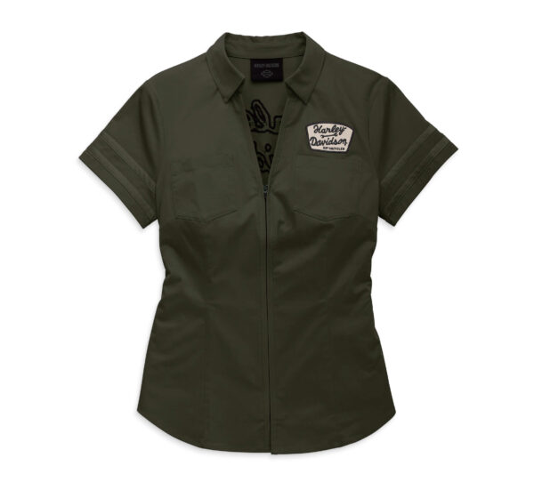 Harley Davidson Női Artisan elől cipzáros ing – Grape Leaf 97% Pamut 3% Spandex Hímzett díszítés