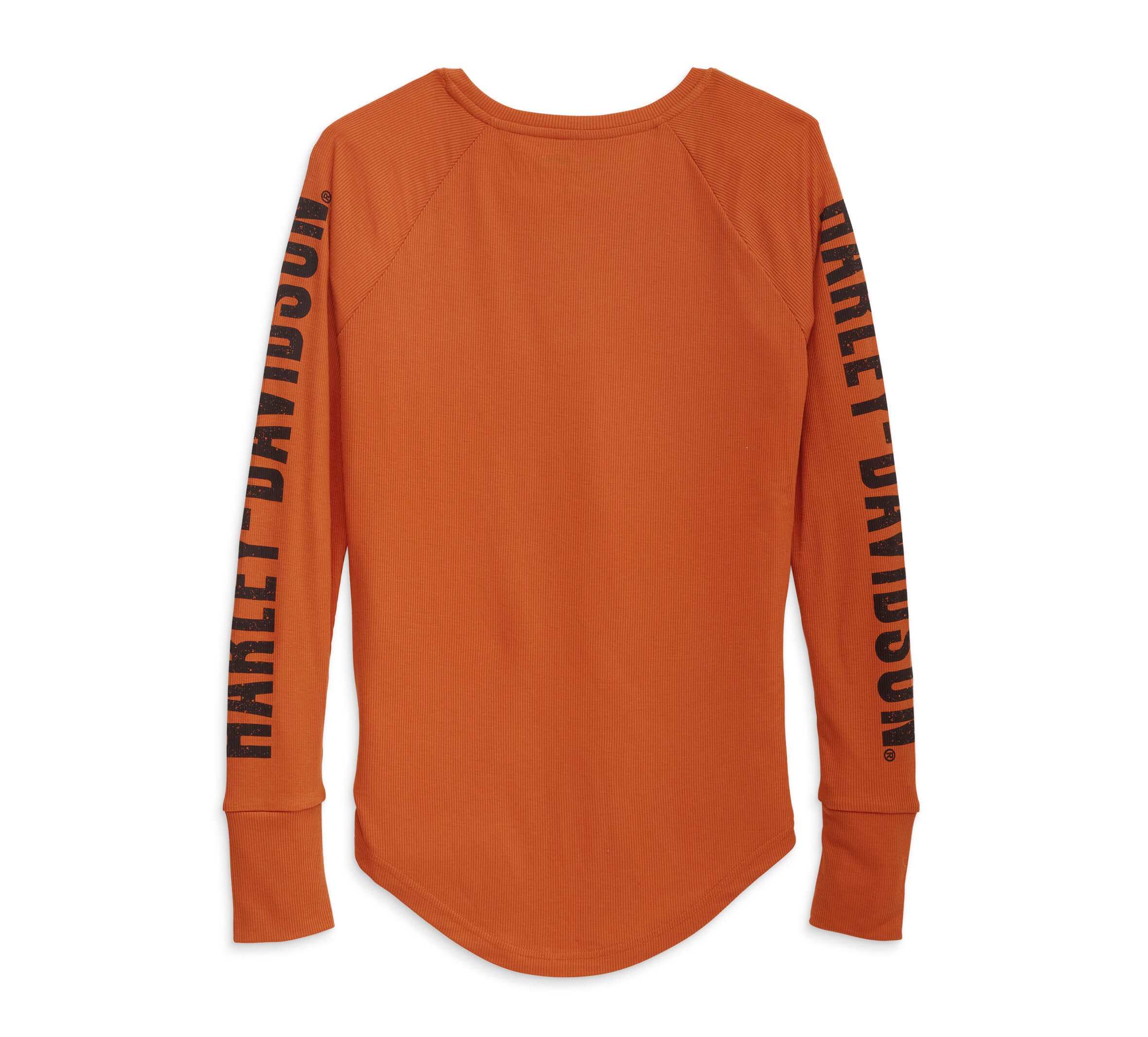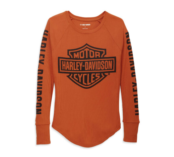Harley Davidson Női Authentic Bar & Shield Bordázott felső – Vintage Orange 68% Modál 27% Poliészter 5% Spandex Kézi nyomtatás
