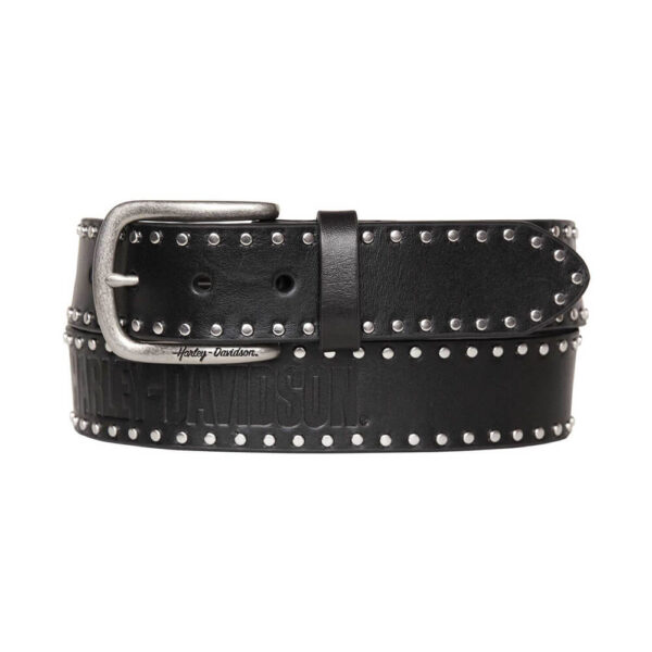 Harley-Davidson Női Flames H-D Studded Bőröv Kiváló minőségű valódi bőrből készült, Az öv szélei körül szegecselt díszítés. Normál szélesség: 3,81cm.