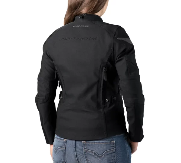 Harley-Davidson Női FXRG Triple Vent System vízálló dzseki Szabadalmaztatott Triple Vent SystemTM a személyre szabott hűtéshez nyitott bungee füllel a szélesebb nyitásért. Vízálló, lélegző Schoeller® c_change® konstrukció biztosítja az optimális testklímát. Bevariablert, rugalmas, könnyű Dainese Pro-Shape testpáncél a könyököknél és a vállaknál. A hátsó testpáncél zseb illeszkedik a könnyű Dainese Pro-Armor hátsó testpáncélhoz.