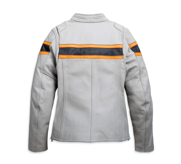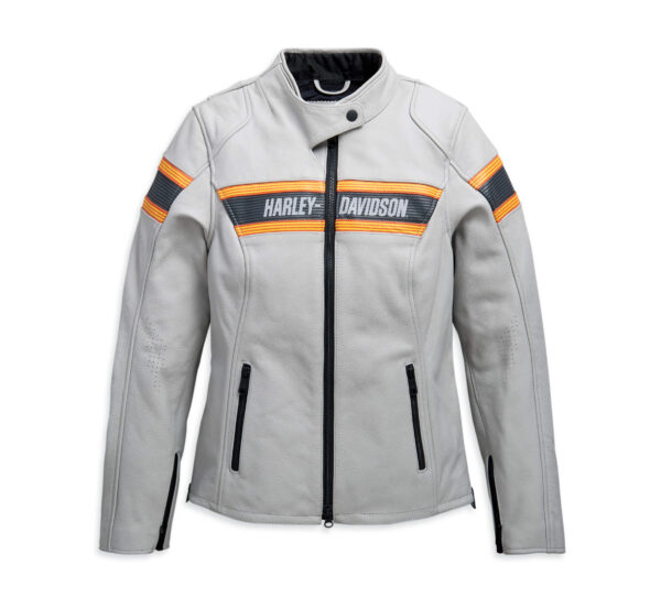 Harley-Davidson Női Sidari bőr dzseki Stay Cool: Szellőztető perforációk a belső könyököknél és a hónaljnál a légáramlás hűtése érdekében. EN 1621-1 CE-jóváhagyással rendelkező, kivehető páncél a könyöknél és a vállaknál. A hátsó testpáncél zseb illeszkedik a könnyű Dainese Pro-Armor hátsó testpáncélhoz. Nehéz marhabőr. Poliészter hálós bélés.