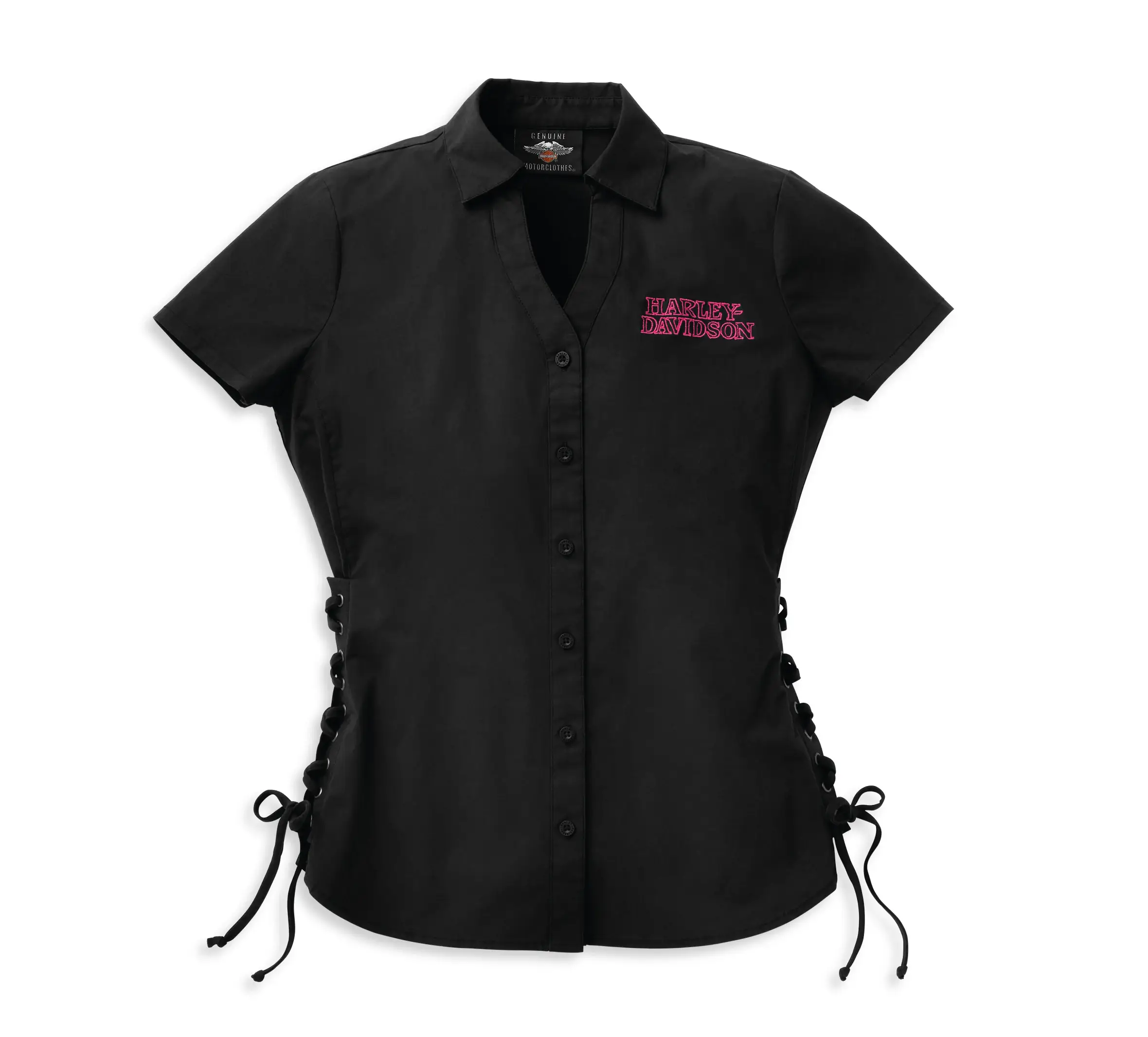 Harley-Davidson Női Skull Laced Side ing 97% Pamut 3% Spandex Közvetlen hímzés Strasszos díszítés