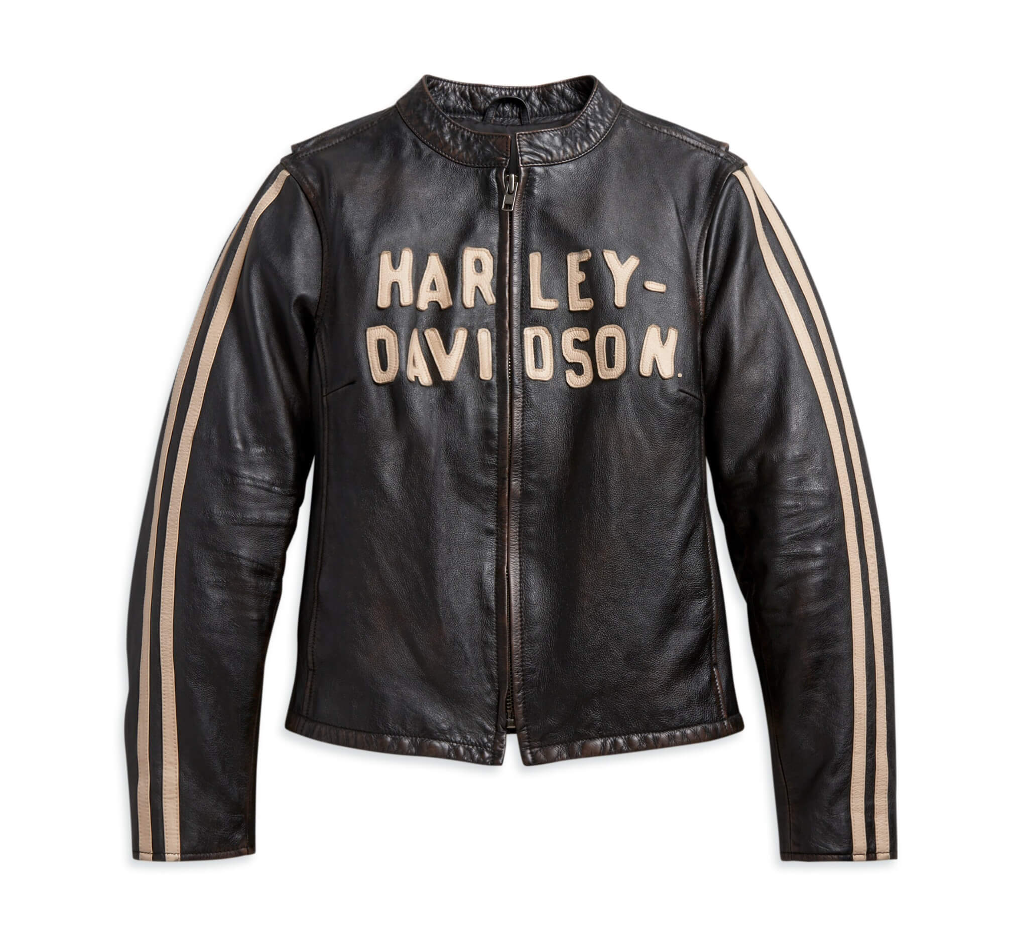 Harley-Davidson Női Sleeve Stripe Bőrdzseki Marhabőr, Lézerrel vágott rátét