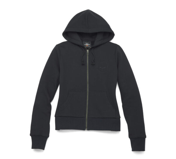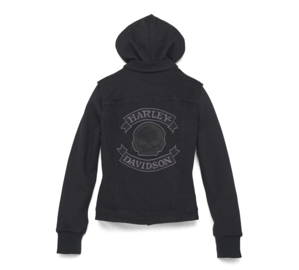 Harley Davidson Női Willie G Skull 3-IN-1 Farmer mellény és cipzáras pulóver. Mellény: 72% Pamut 27% Poliészter 1% Spandex, Kapucnis: 60% Pamut 40% Poliészter gyapjú