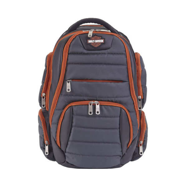 Harley-Davidson steppelt, több cipzáras zsebes hátizsák 9 cipzáras zsebbel és résszel rendelkezik, 48cm X 30,5cm X 15cm